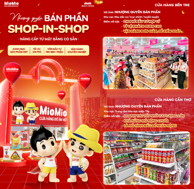 Trong bối cảnh chi phí mặt bằng tại các vị trí đắc địa ngày càng leo thang, việc tối ưu hóa hiệu suất trên từng mét vuông diện tích đang trở thành bài toán sống còn của các chủ cửa hàng. Nếu bạn đang sở hữu một không gian kinh doanh hiện hữu và muốn đa dạng hóa nguồn thu, mô hình Nhượng quyền bán phần của MioMio chính là chiếc “chìa khóa” phù hợp đó.